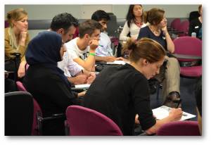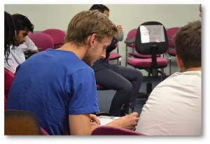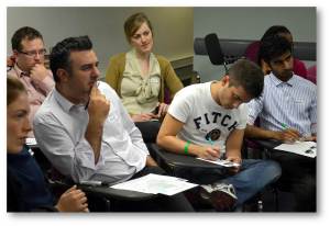 Once the lecture is over, the Peer Facilitators divide participants into small groups. Each group is run by two Peer Facilitators and an Extreme Psychiatrist. Actors rotate between groups to perform their role-plays. Peer Facilitators pick a volunteer to do the role-play and allocate feedback roles to other students in the group.