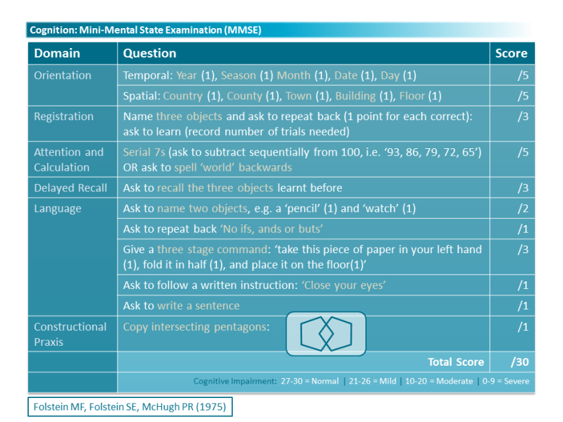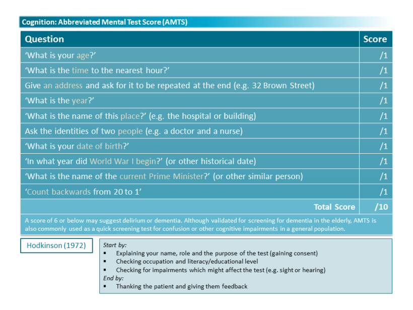 Cognition AMTS MMSE Share this: Click to share on Facebook (Opens in new window) Facebook Click to share on X (Opens in new window) X Like Loading...